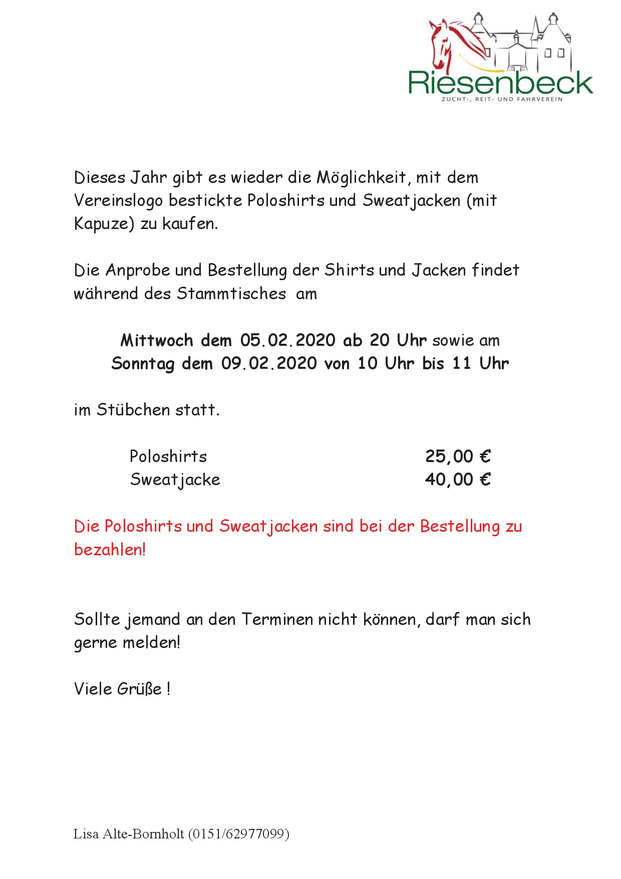 Die Poloshirts und Sweatjacken sind bei der Bestellung zu bezahlen!