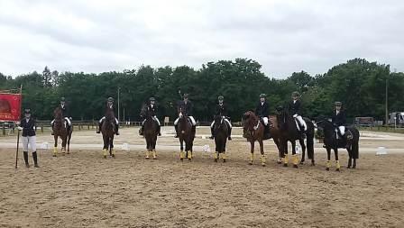 Am Samstagmittag startete bei bewölkten, aber trockenen Wetter der Wettkampf um die Kreisjugendstandarte mit der Mannschaftsdressur und dem anschließenden Vormustern.